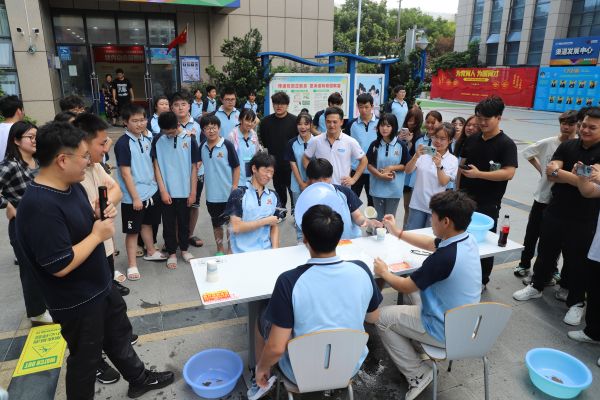 緊接著便是激動人心的“搶答潑水游戲”環(huán)節(jié)。同學們迅速調整狀態(tài),一手拿盆,一手準備潑水,腦袋還得思考答案,氣氛緊張刺激又不失歡樂;操場瞬間化身為歡樂的海洋。水花與笑聲交織在一起,同學們時而靈活躲避,時而拿盆遮擋,每一滴飛濺的水珠都像是快樂的使者,傳遞著友誼與默契。在這場沒有硝煙的“戰(zhàn)爭”中,大家不僅釋放了學習的壓力,更在嬉笑打鬧中加深了彼此間的了解與信任,共同編織了一段難忘的青春記憶。