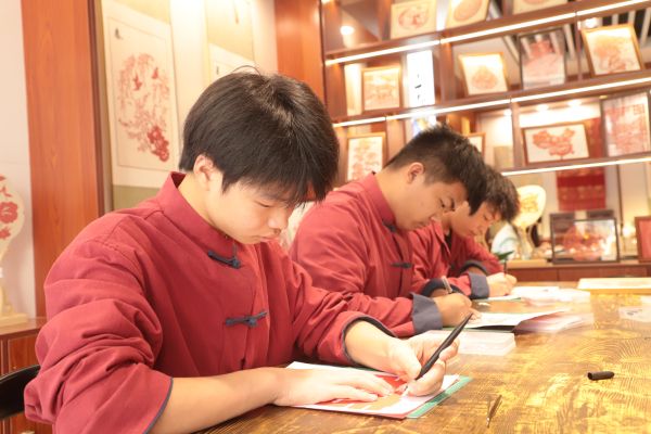 隨后,在導(dǎo)師的悉心指導(dǎo)下,學(xué)生們紛紛化身為小小匠人,全神貫注地投入到手工創(chuàng)作的世界。在刻紙畫區(qū)域,他們細(xì)心勾勒線條,精準(zhǔn)雕琢每一細(xì)節(jié),每一刀一劃都透露出對美的追求與對傳統(tǒng)的敬畏。而在剪紙區(qū),五彩斑斕的紙張?jiān)趯W(xué)生們靈巧的雙手下漸漸幻化為生動的圖案,每一幅作品都蘊(yùn)含著創(chuàng)作者獨(dú)特的情感與想象,成為了非遺文化與現(xiàn)代創(chuàng)意完美融合的見證。